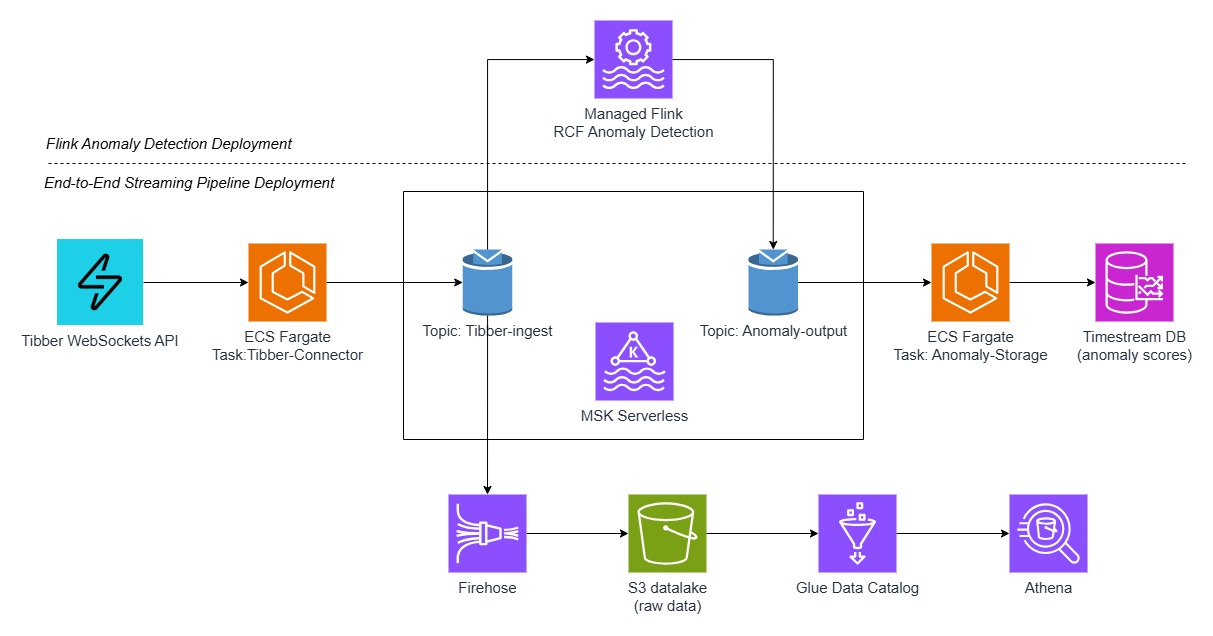 | Managed Flink Anomaly Detection | Managed Flink (Java) | Real-time ML anomaly detection with Random Cut Forest (RCF) |